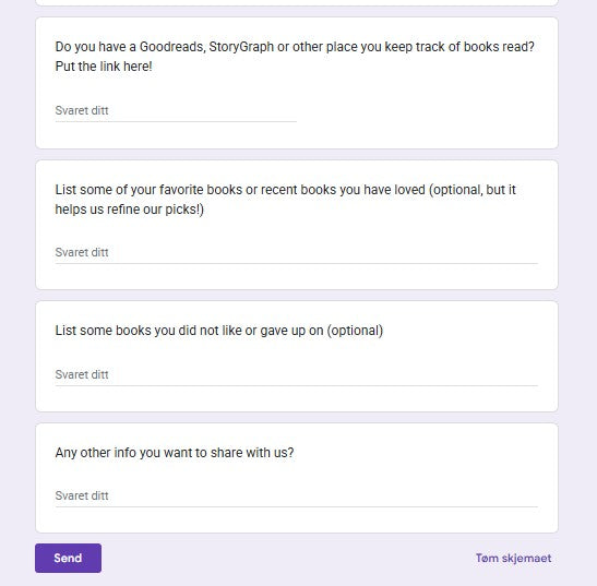 After purchase we send you a form about what you enjoy (and don't). Once you fill out your form, we have all the info we need to start sending you a monthly read. You are also always welcome to give us feedback on what you loved or didn't like.